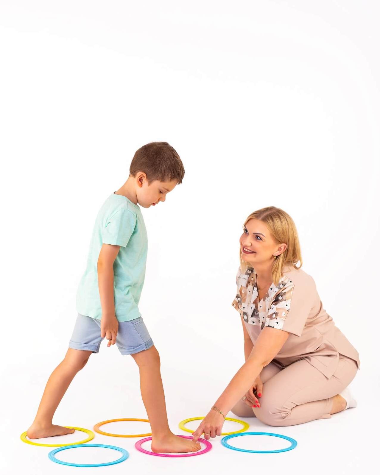 Kolanka na Medal to tygodniowy zestaw prostych ćwiczeń dla dzieci w wieku przedszkolnym i szkolnym, które mają kolana koślawe, zapadające się kolanka do środka lub niestabilny chód.